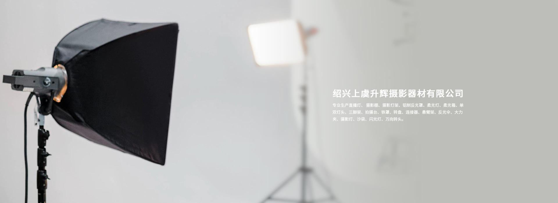 紹興上虞升輝攝影器材有限公司專業(yè)生產(chǎn)直播燈、 攝影棚、攝影燈架、鋁制反光罩、柔光燈、柔光箱、單雙燈頭、三腳架、拍攝臺、鐵罩、轉(zhuǎn)盤、連接器、懸臂架、反光傘、大力夾、攝影燈、沙袋、閃光燈、萬向轉(zhuǎn)頭。